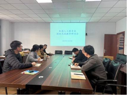 11月25日,机器人工程专业教研室以“思政赋能,铸魂育人”为主题召开课程思政专题研讨会,专业全体教师参会。