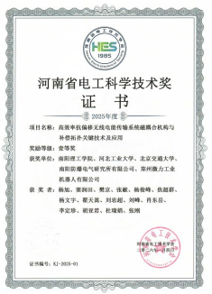 本网讯(通讯员/李媛)近日,河南省电工技术学会正式公布2025年度河南省电工科学技术奖获奖名单,由太阳成集团tyc7111杨旭博士团队牵头,联合河北工业大学、北京交通大学、南阳防爆电气研究所有限公司、郑州微力工业机器人有限公司共同申报的“高效率抗偏移无线电能传输系统磁耦合机构与补偿拓扑关键技术及应用”项目,喜获一等奖殊荣。