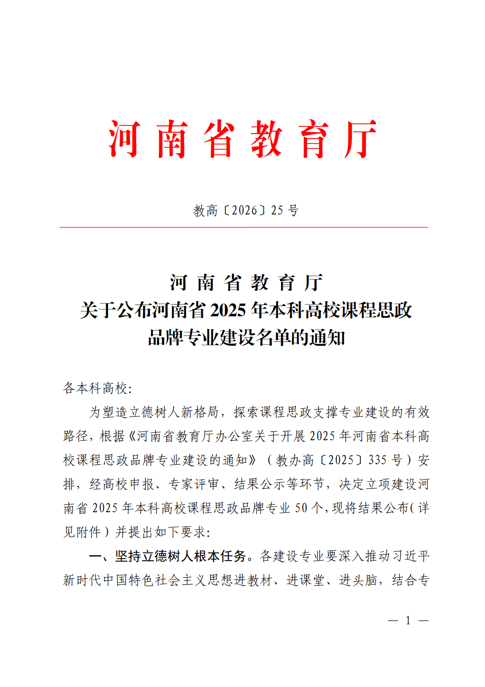 河南省本科高校课程思政品牌专业建设项目,经高校申报、专家评审、结果公示等严格环节遴选产生,全省共立项建设 50 个专业。该项目旨在塑造立德树人新格局,探索课程思政支撑专业建设的有效路径,要求各建设专业将价值塑造有机融入知识传授与能力培养全过程,实现思政教育与专业教育的深度融合。